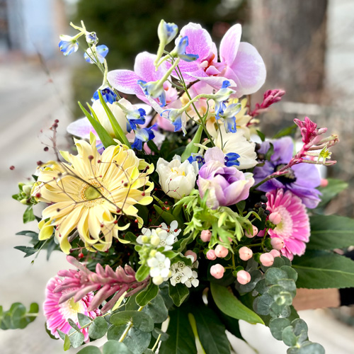 Sende Deinen gewünschten Liefertermin und Gestaltungs-/Farbwunsch an blumelina: